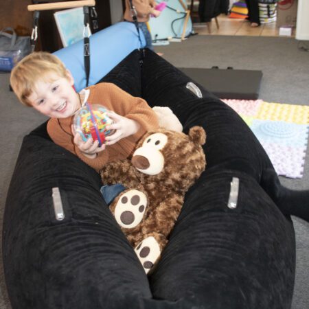 A breathable, stretchable sensory suit that provides deep pressure input to support self-regulation, focus, and body awareness.